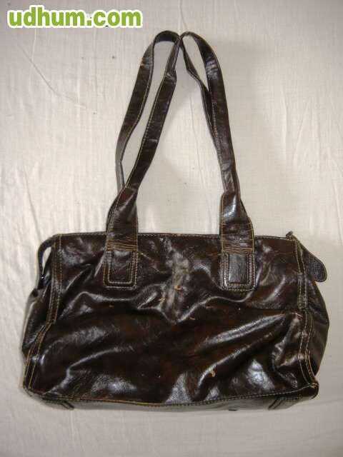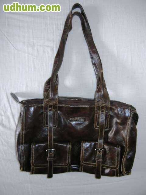 Bolso de señora, color marrón, con varios departamentos, de cuero.