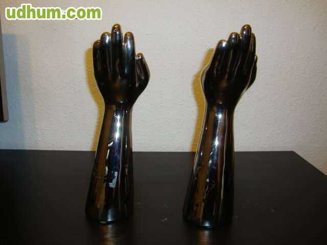 2 brazos de caramica cromada en plateado y las manos son portavelas, miden 30cm de altura, gastos de envio 6