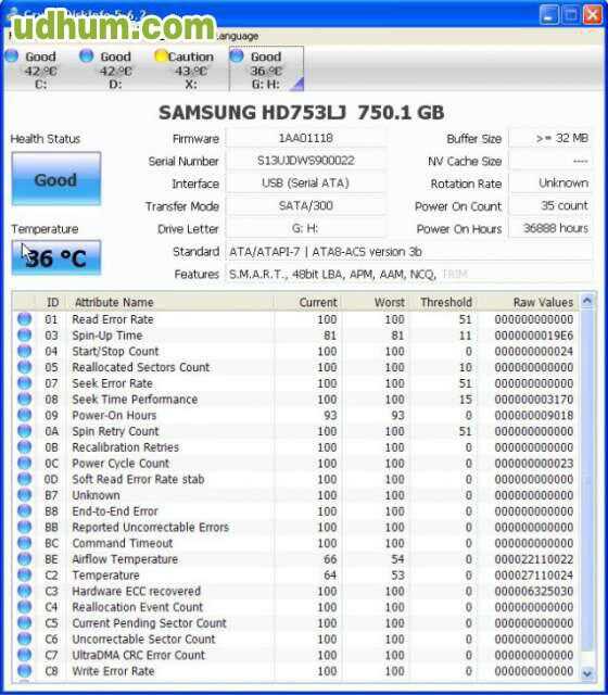 Disco Duro, 750Gb, Samsung Model HD753LJ, Sata, 3. 5 Inch, Good working condition.