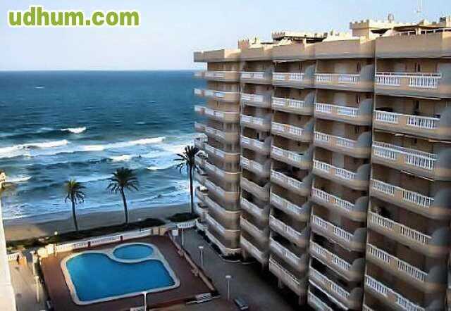 Este apartamento, ubicado a unos 70 metros de la playa, cuenta con 2 dormitorios y tiene capacidad para 5 personas. Dispone de garaje en un edificio cercano, ascensor, televisión, mobiliario de jardín, terraza y plancha. La cocina independiente de gas está totalmente equipada. El alojamiento admite animales. Más información y alojamientos en www. alquilerplaya. com (Ref. 57908). Playa a unos 50 metros. 9ª Planta. Ascensor. Garaje. Amueblado. Terraza. Calefacción. Piscina. Jardín. Se aceptan mascotas