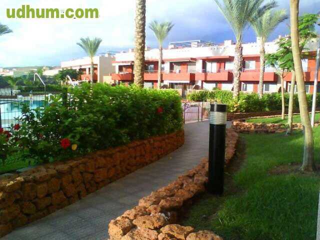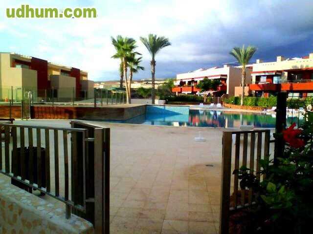 Ref: P1037. Piso en Adeje zona El Madroñal, 80 m. de superficie, 12 m2 de terraza (mas 23m2 jardin), 1000 m. de la playa, 2 habitaciones dobles, un baño, propiedad en buen estado, cocina equipada, orientación sureste. Extras: ascensor, garaje (plaza)
