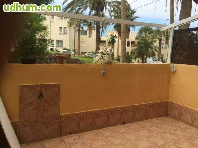 Ref: P1037. Piso en Adeje zona El Madroñal, 80 m. de superficie, 12 m2 de terraza (mas 23m2 jardin), 1000 m. de la playa, 2 habitaciones dobles, un baño, propiedad en buen estado, cocina equipada, orientación sureste. Extras: ascensor, garaje (plaza)