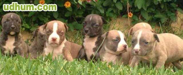 American Stanford, disponemos de cachorros de entre 8 y 16 semanas. Machos y hembras con vacunas y cartilla al dia, desparasitación interna y externa, chip implantado, garantia genetica y congnetica de pureza de raza de 2 años. Disponemos de más de 2