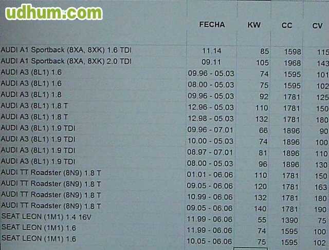 Fabricante: audi / seat / skoda / vw modelo: a1 / córdoba / ibiza / fabia / rapd / roomster / polo 9n / polo 6r / fox tipo: a1 incl. sportback tipo 8x, córdoba tipo 6l, ibiza iv tipo 6l, ibiza v incluyendo sport coupe tipo 6j, fabia tipo 6y, fabia ti