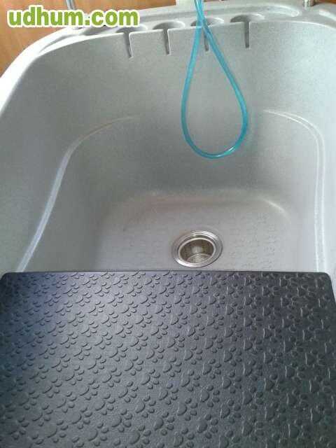 bañena color granito, ajuste altura, puerta acceso, relieve antidelizamiento, balda quita y pon para perros pequeños. Dimensiones ext. 148x79(71estr. central)cm. altura interior 49cm, puerta 49cm. altura mas baja 44cm, mas alta 125cm. muy pocos husos. no incluye gastos de transporte.