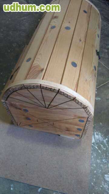 Hola buenas vendo 2 baúles de madera. Son echos por carpintero cada uno son diferentes. . el de tapa plana 35e y el de tapa ondeada 45e si los quieres pintados 10e más y si no en madera desnudar.