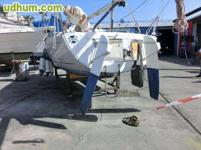 Beneteau First 310 Eslora: 9, 14m Manga: 2, 95m Calado: 1, 80m Motor: Yanmar 2GM20 de 18cv con 800 horas. Electrónica: Corredera, Sonda, Equipo de viento. Dos camarotes, uno en proa y otro en popa. Un baño. Tres mayores y tres génovas 1 spinaker. Itb
