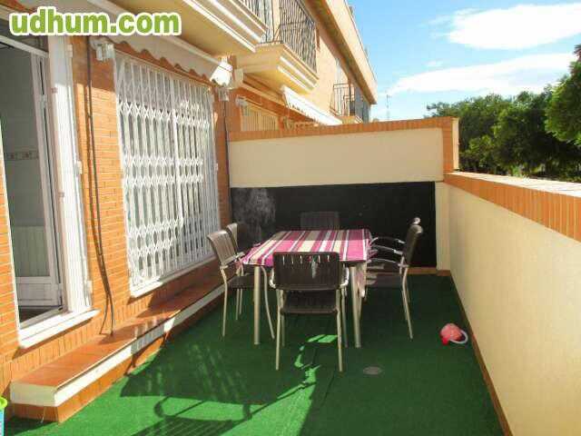 Ref: 173. Adosado de 200m2 distribuidos en: Garaje privado para 2 coches y trastero, con accseo directo a la vivienda. Planta baja: 1 aseo, salón con acceso a terraza de 15m2 con césped artificial y cocina también con acceso a la misma terraza. 1º Planta: 3 habitaciones, 2 baños, uno de ellos en suite. Buhardilla diáfana con aramarios empotrados y acceso a terraza de 20m2 . Zona comunitaria. Dispone de calefacción, suelos de mármol y parquet, aire acondicionado, mosquiteras, rejas, armarios empotrados, gar. Garaje. Trastero. Terraza. Calefacción. Aire acondicionado. CE: G