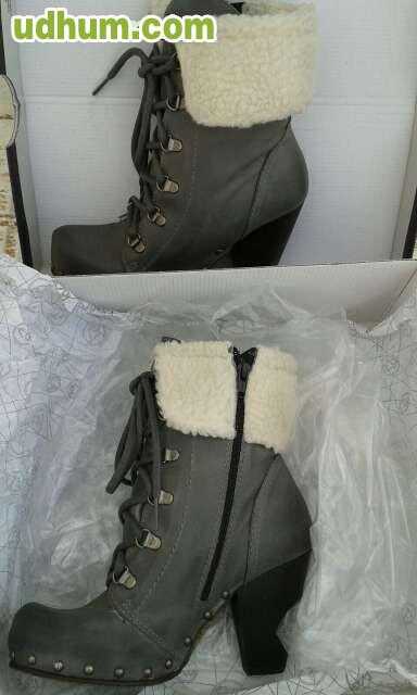 Bota alta con tachuelas discretas, borreguillo y plataforma imitación madera. No pesan nada. Color Marron
