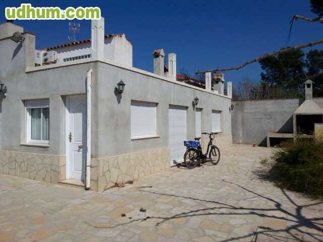 Ref: CA. 0125. Bonito chalet adosado en zona Saldonar, en la costa norte de Vinarós, de 110m de vivienda y 300m de parcela. Dispone de 3 habitaciones (2 dobles y 1 con literas), 1 baño, cocina americana, salón comedor con chimenea, piscina privada, b