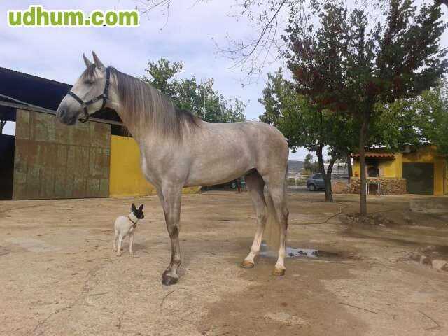 Caballo PRE con 5 año bastante montado lla esta haciendo apollos espapardas adentro y afuera pasos atrás y eniciado deceabajo paso español y piafe