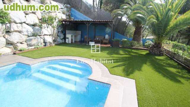 Ref: AM-3. Amplia Casa-Chalet en Cabrils muy luminosa de una sola planta de 300m2 y jardín de 1200m2 con vistas al mar. Dos amplios salones, 4 habitaciones dobles( 1 suite), cocina-office, 2 baños, cuarto de máquinas, parking 2 coches, piscina, porch