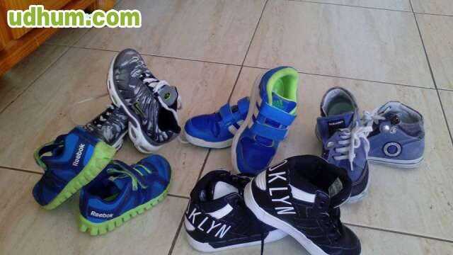 se vende lote de calzado de marca adidas negro talla28 adidas azules y verdes talla30 pablosky botas talla29 nike talla27 lote todo por 35e si lo quieres por separado 10e la unidad tienen muy poco uso en muy buen estado. Color varios