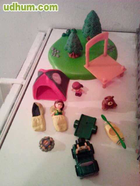 Marca Chicco. Incluye 3 muñecos con tienda de campaña y sacos, un todoterreno con remolque, piragua, fuego y zona de bosque. Impecable, apenas usado. Regalo bolsa para transporte.
