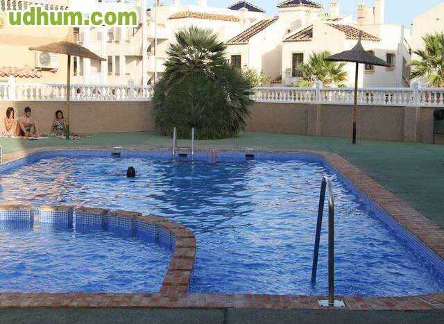 Ref: sb361. orihuela costa-entre golf. -vivienda dúplex en urbanización entre golf, 75 m² construidos, 3 dormitorios, 2 baños, salón, cocina semi independiente, solárium, jardín con entrada para coche, totalmente amueblado, orientación este. - reside