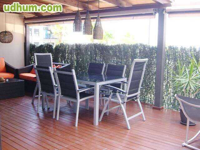 Ref: 907. Precioso apartamento recién reformado en urbanización exclusiva en Santa Pola. Consta de: 2 habitaciones con armarios empotrados, 2 baños completos, uno en suite principal, salón-comedor con cocina abierta, terraza de 85m2, y 2 trasteros. La vivienda cuenta con aire acondicionada frío-calor centralizado, rejas y pérgola. La urbanización está dotada de piscina comunitaria efecto cascada, zonas verdes, zona infantil y pistas de paddle. También dispone de plaza de garaje subterráneo incluida en el p. CE: G