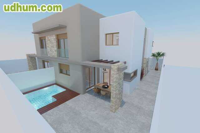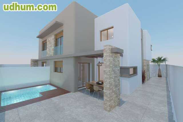 Chalet de diseño en Guardamar. Ref- 831ch Obra nueva, chalet de diseño con vistas del mar. Llave en mano, vivienda piloto disponible si se desea con muebles. 305 metros construidos 3 dormitorios 2 baños Vestidor Trastero Terraza solárium Piscina en p