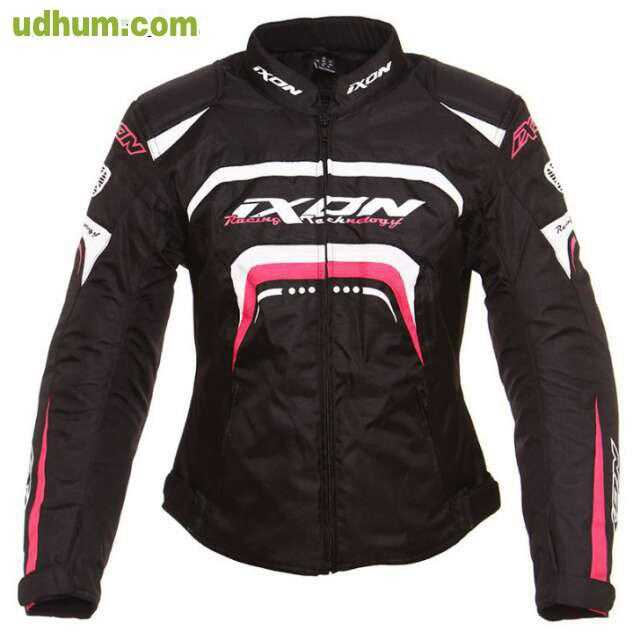 www. completmoto. com Chaqueta de verano ixon sierra negro para mujer. Chaqueta de moto en cordura ventilada de mujer Protecciones con certificación CE en hombros y codos Bolsillo para protector de espalda ( no incluido ) Mangas preformadas, entallad