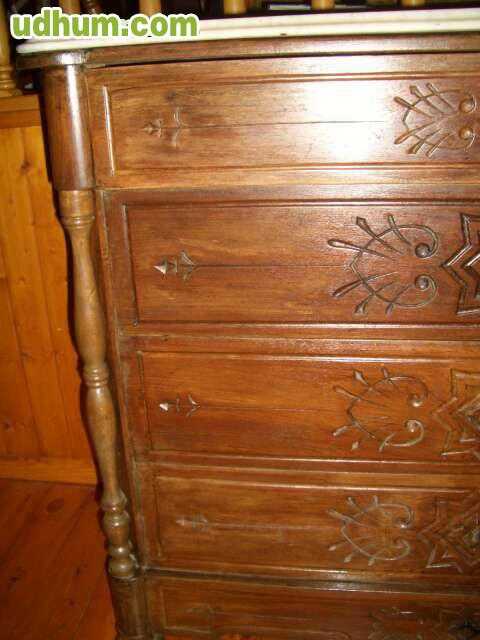 Comoda de madera de haya tallada, con encimera de mármol y seis cajones. Muy decorativa y práctica para el salón , entrada, dormitorio. . . Medidas 105x46 y 74 de alta. Restaurada recientemente.