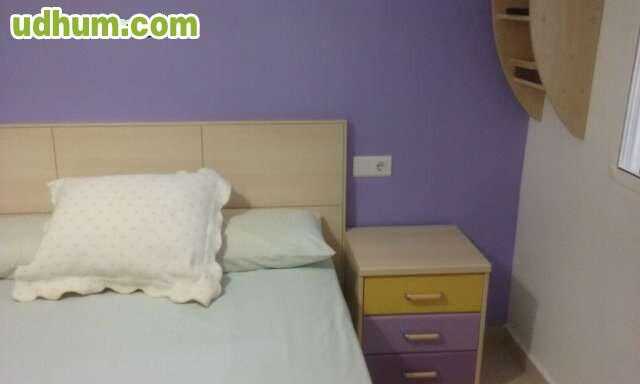 Vendo conjunto dormitorio, de madera maziza, todo del mismo juego. Está compuesto por cabezero, armario de dos puertas con llave, cómoda, mesita de noche, lámpara y escritorio. Muy buen estado.