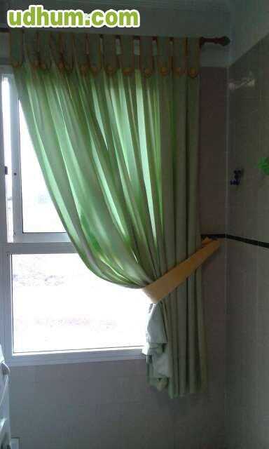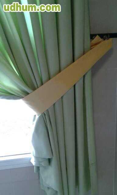 2 juegos cortinas iguales , con su riel de techo, su bando y herrajes de pared para recogerlas. El bando va cogido ala escayola con belco. En buen estado, tela de calidad y echas a medida en tienda. Medidas para hueco de 1, 45cm: 2 patas de 1 53cm. d