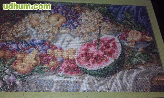 Dispongo esye cuadro con marco ideal para la cocina echó con punto de cruz. Medida: 46* 27. Medida con marco: . . . . Envio a toda España y fuera del país. Precio NO negociable.