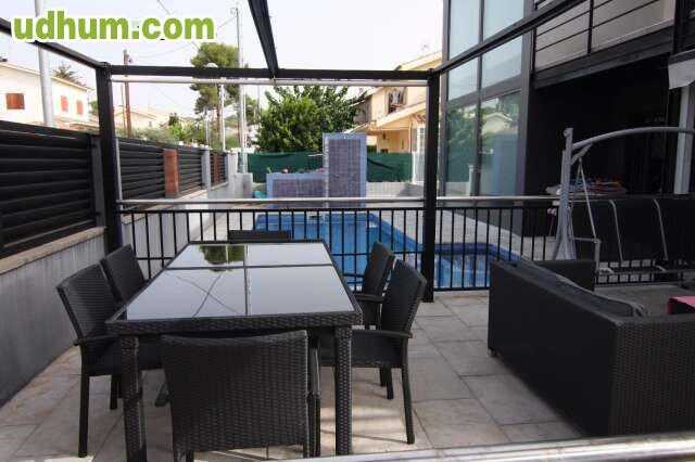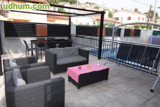 Calle LLeida. Apartamento en Cubelles cerca de la playa, del paseo marítimo y de la estación de tren. Segunda planta. Consta de salón con chimenea, tres habitaciones, baño, cocina con lavadero y terraza con vistas al jardín además de trastero indepen
