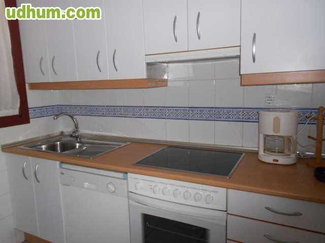 En el playazo de vera apartamento cómodo y coqueto, tiene 2 dormitorios 1 baños, salón comedor con sofá cama, cocina americana totalmente equipada, aire acondicionado, porche con jardín privado con sus muebles, plaza de aparcamiento, piscina comunita