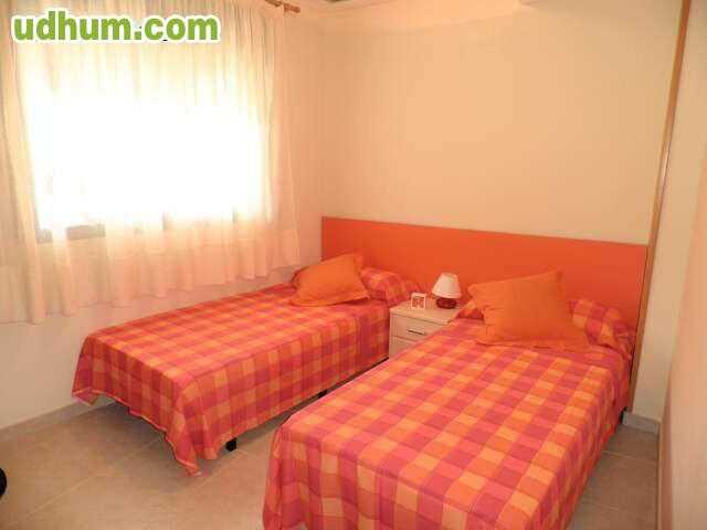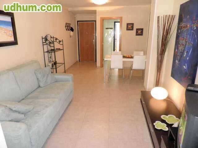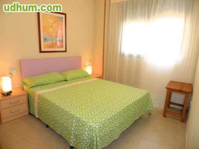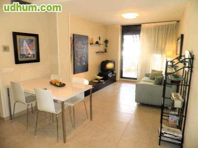 Ref: V043. Apartamento en 1º planta de nueva construcción totalmente amueblado de 75 mts con 2 dormitorios, baño completo con hidromasaje, baño con plato de ducha, cocina independiente con galería, salón comedor, terraza, aire acondicionado centralizado frio-calor suelo de gres ventanas climalit, puerta de seguridad videoportero y plaza de garaje con trastero. La urbanización cuenta con piscina de adultos y niños, jacuzzi, pista de padel, gimnasio, sauna, jardines y conserjería. Está situada en la zona d. 1ª Planta. CE: G