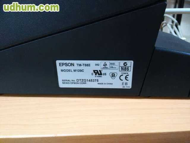 Impresora para TPV tickets termica epson tm T88III model m129c con corte automatico y puerto sereie rs232c se puede conectar a usb a través de un cable adaptador usb a serie, su precio es de 15 euros.