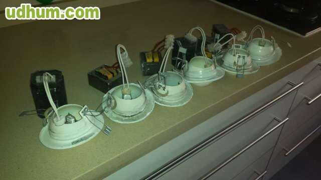 Focos halogenos de 150w empotrables y orientables, con su reactancia, condensador y bombilla. Ideal para escaparates. Tengo 13 a 10 cada uno.
