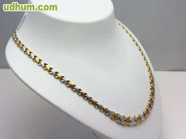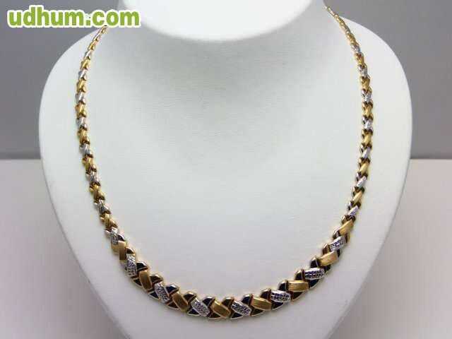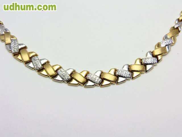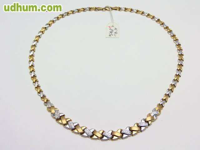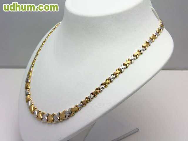 gargantilla oro 18 kt de primera ley combinada ocasion 36 euros gramo. peso 57, 5 gramos, longitud 45 cm, anchura 1, 2 cm. con certificado de garantia. visite nuestra joyeria en calahorra, posibilidad de pago a plazos sin intereses, elija sus propias