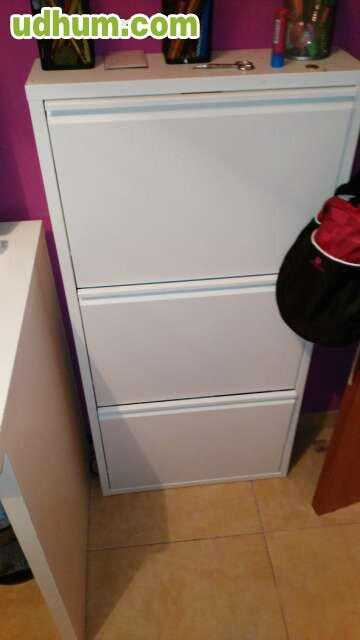 una cama de 90 un armario un escritorio tres estanterias una mesita de noche un zapatero