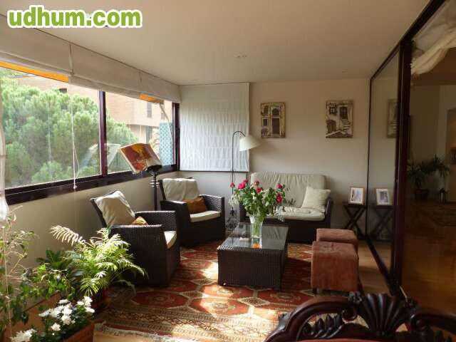 Este excelente ático dúplex de 209 m2, está situado en una magnífica urbanización residencial del barrio de Hortaleza (Madrid). La urbanización destaca por sus amplios espacios comunitarios entre los que encontramos una bonita y singular piscina circ