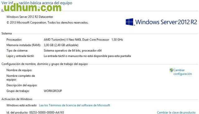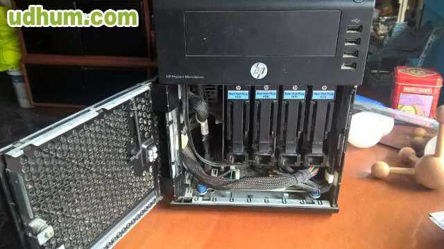 Hp microserver g7 n40l. bajo consumo. amd turion ii neo n40l dual core 1, 50ghz. 3gb de memoria ram en 2 modulos (1gb + 2gb). tarjeta de red gigabit hp nc107i posibilidad de creación de raid 0 / 1 / 10. hasta 4 discos duros, y una unidad de dvd. drivers para windows server 2008 / 2012 /2012 r2. bios actualizada para windows server 2012 r2. fuente de alimentación de 150w. consumo de procesador 15w. el equipo con dos discos duros, no llega a 100w. rendimiento excelente para ver videos mkv por dlna, 3 GB de memoria