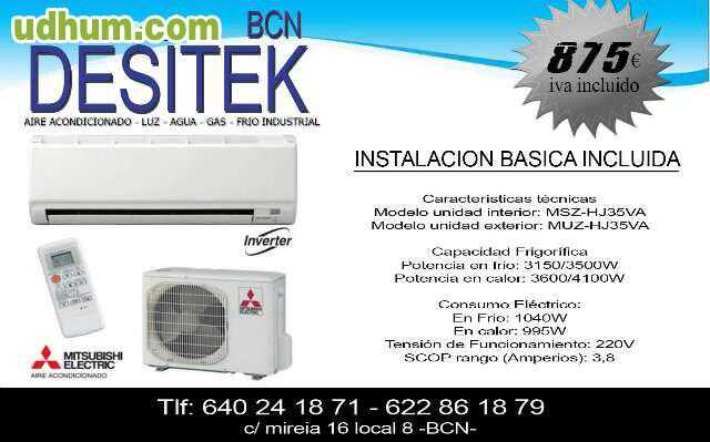 Oferta verano 2015 equipo mitsubishi e instalacion incluida todo por 875 iva incluido, 2 años de garantia en el equipo.