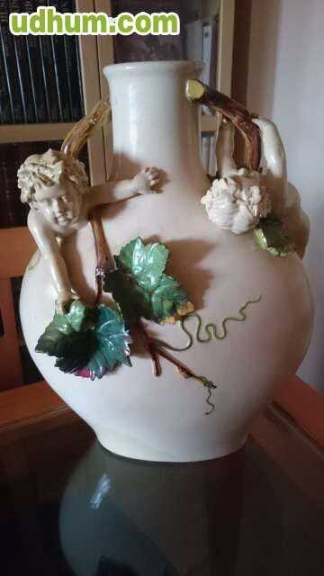 Jarrón en perfecto estado fabricado en 1800 en Inglaterra, con relieves en forma de ángeles.