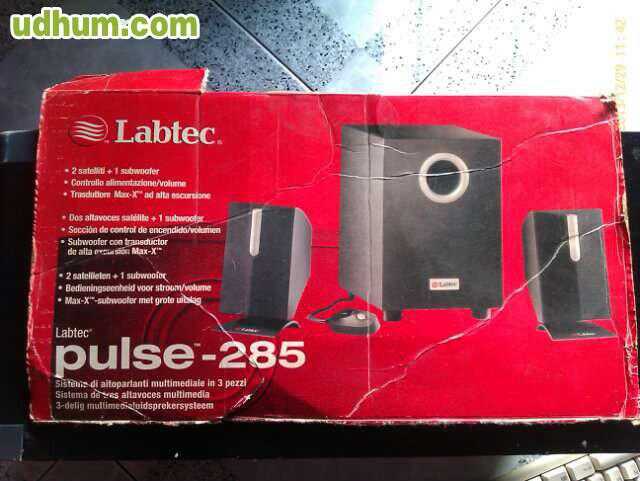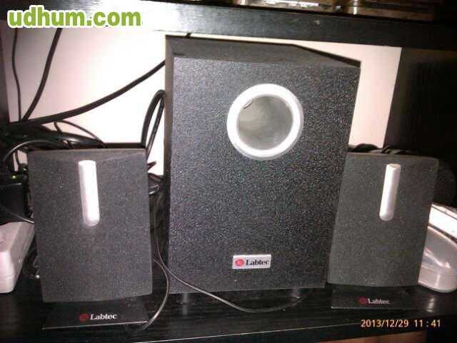 Altavoces Labtec 2. 1 modelo Pulse 420. Consta de dos altavoces pequeños y un subwoofer.
