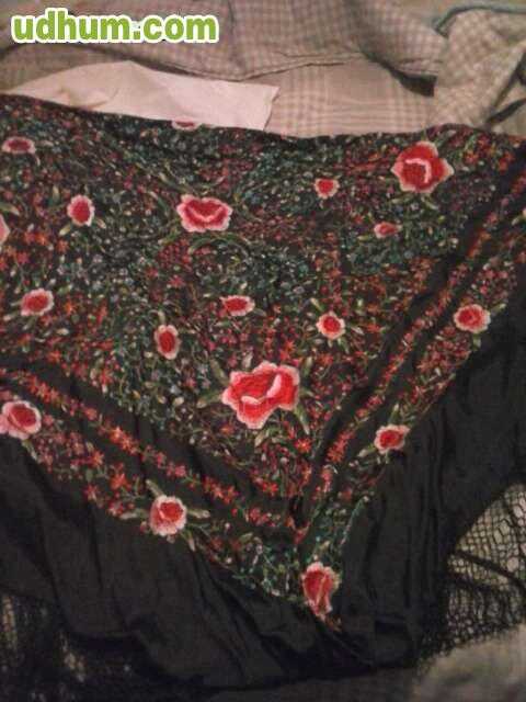Vendo manton hecho a mano, color negro con bordado de rosas, perfecto estado