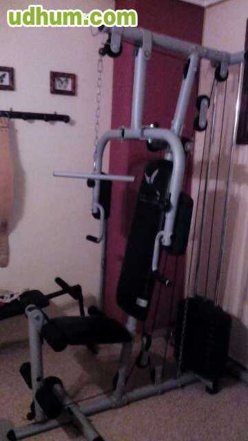 maquina de musculacion muy completa con la que se pueden hacer y trabajar mucha variedad de ejercicios y musculos. el precio nueva en tienda fue de 300 se le ha dado muy poco uso, practicamente ninguno. el precio de venta es de 60 y es asi de barat