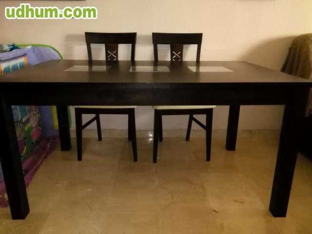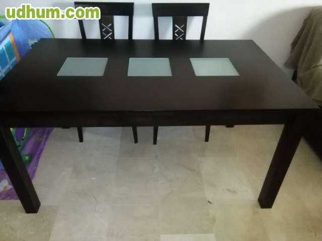Mesa comedor de madera de cerezo extensible con cristal incorporado. Medidas largo 1. 63 cm. 90cm de ancho. 66cm de alto. Precio 180 . Lote de 6 sillas a juego con la mesa. Medidas: ancho 50x50. Alto 1. 02. 20 la unidad. 6sillas 120.
