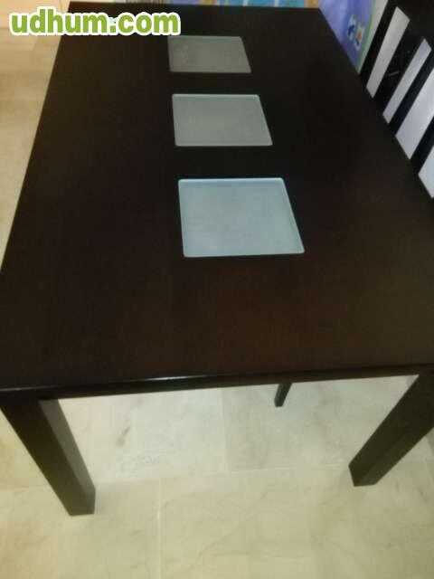 Se vende mesa de comedor de color wengue, de 1 50 x 0 90 x 0 75 , en buen estado, con 3 cristales mate al ácido.
