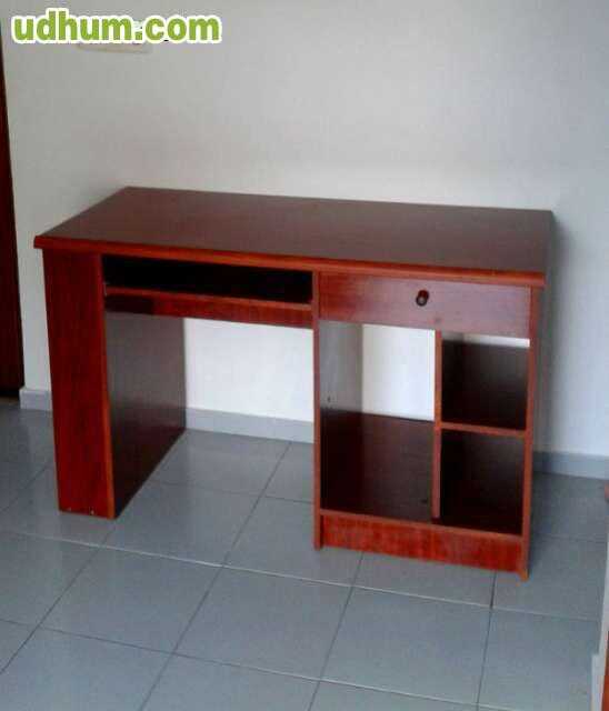 Vendo mesa para ordenador, de madera. Con poco uso y en buen estado. Presenta bandejas deslizantes (inferior y superior)y con tres cajones. Con medidas de 1m (ancho), 0. 50m (profundidad)y 0. 86 (alto). También posee ruedas.