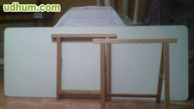 2 mesas desmontables para celebraciones. medidas 1 metro de ancho x 2. 40 de largo. vienen en 4 módulos y cada dos se monta una mesa. se vende con los caballetes para sujetarlas