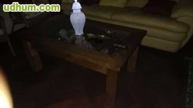 Mesita de centro de madera maciza echa a mano, le falta el cristal del centro, precio negociable