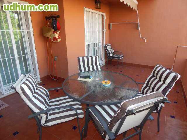 Alquiler vacacional. Casa en Montemar cerca de playa y paseo maritimo (350 metros)vistas al mar y muy soleada. 3 habitaciones (dos individuales y una matrimonio) , chimenea, terraza (12 m2), gran solarium (65 m2) con barbacoa, trastero y garaje de us