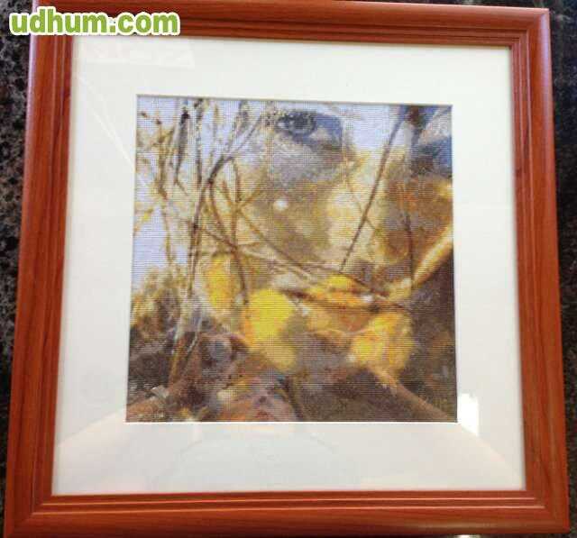 cuadro hecho a punto de cruz, lleva 40 colores. medidas con el marco 43 x 43 cm. ideal para regalo exclusivo y único. envió por toda España.