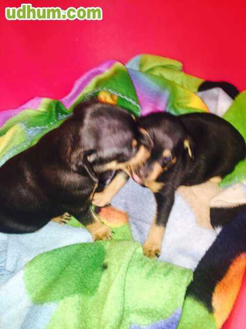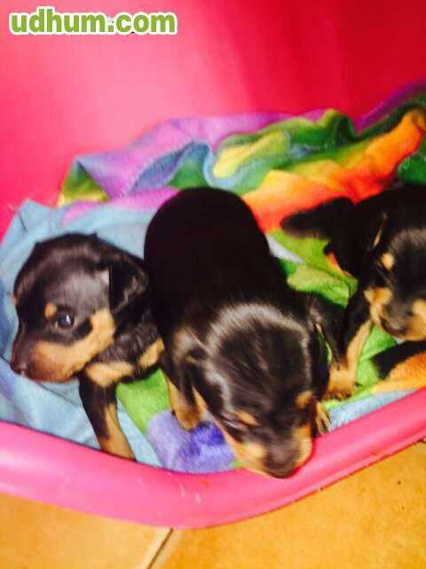 Cachorritos de Mini Pincher, con 2 meses, machos y hembras, muy buena calidad, peso padres 1, 500kg . Es una raza fiel, cariñosa y hogareña, idial para niños y familias. Padres con pedigre. Los cachorros se entregan con su Cartilla sanitaria , vacuna