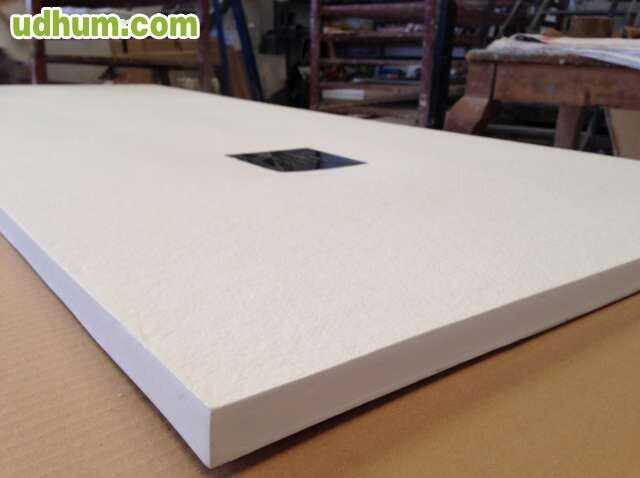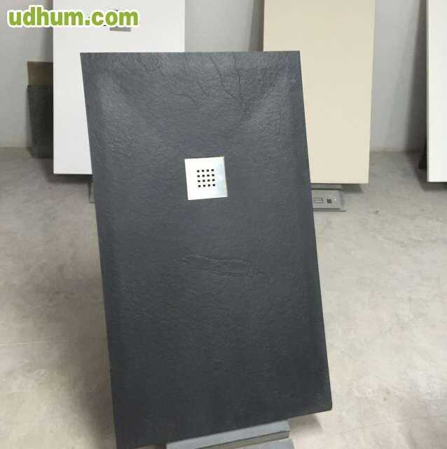 Plato de ducha de resina con carga mineral y gel coat textura pizarra o en granito colores blanco , negro , beig , gris , grafito , negro o chocolate la masa del plato estofo del mismo color precio por metro cuadrado 160 ejemplo plato de 70x100cm precio 112
