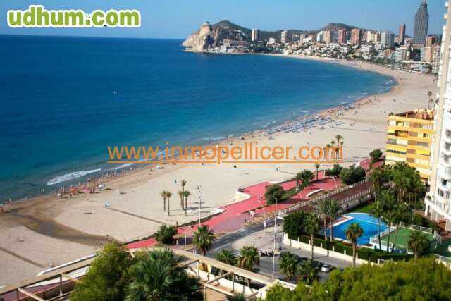 Avenida de la armada española. Se alquila piso en Benidorm para TODOS Y CUALQUIER MES DEL AñO en 1ª linea de playa de Poniente (aprox. 50m de la playa). 5ª planta con ascensor. Dispone de cocina, salon, baño y 2 dormitorios. Terraza con vistas al mar